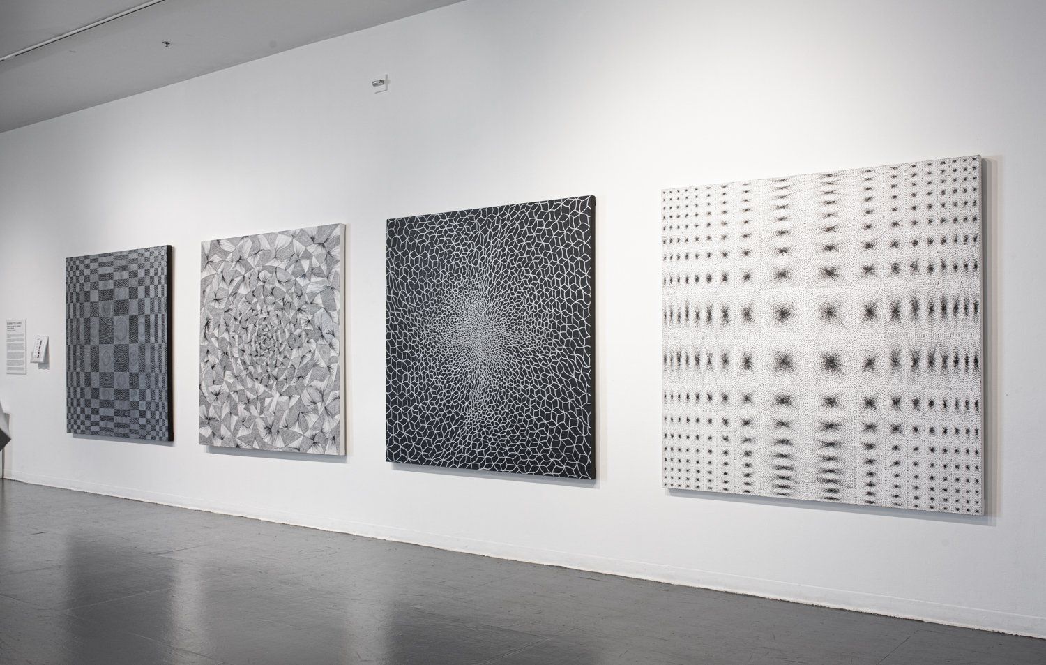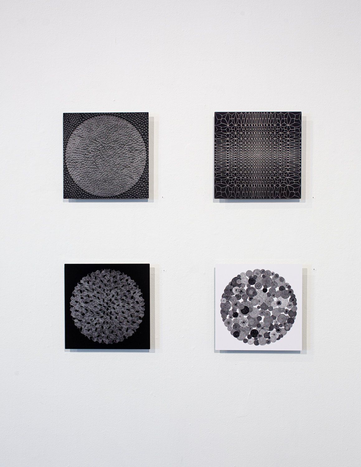 The repetitive, precise mark-making and molding techniques demonstrated in Galinsky’s paintings, Ugiansky’s sculptures, and Brown’s installations exemplify how the meditative nature of repetition can create the space necessary to accomplish any ambition. From afar these techniques create visually stunning works of art, but it is only in the close details where one can best appreciate the dedication and ruminative qualities of the work.