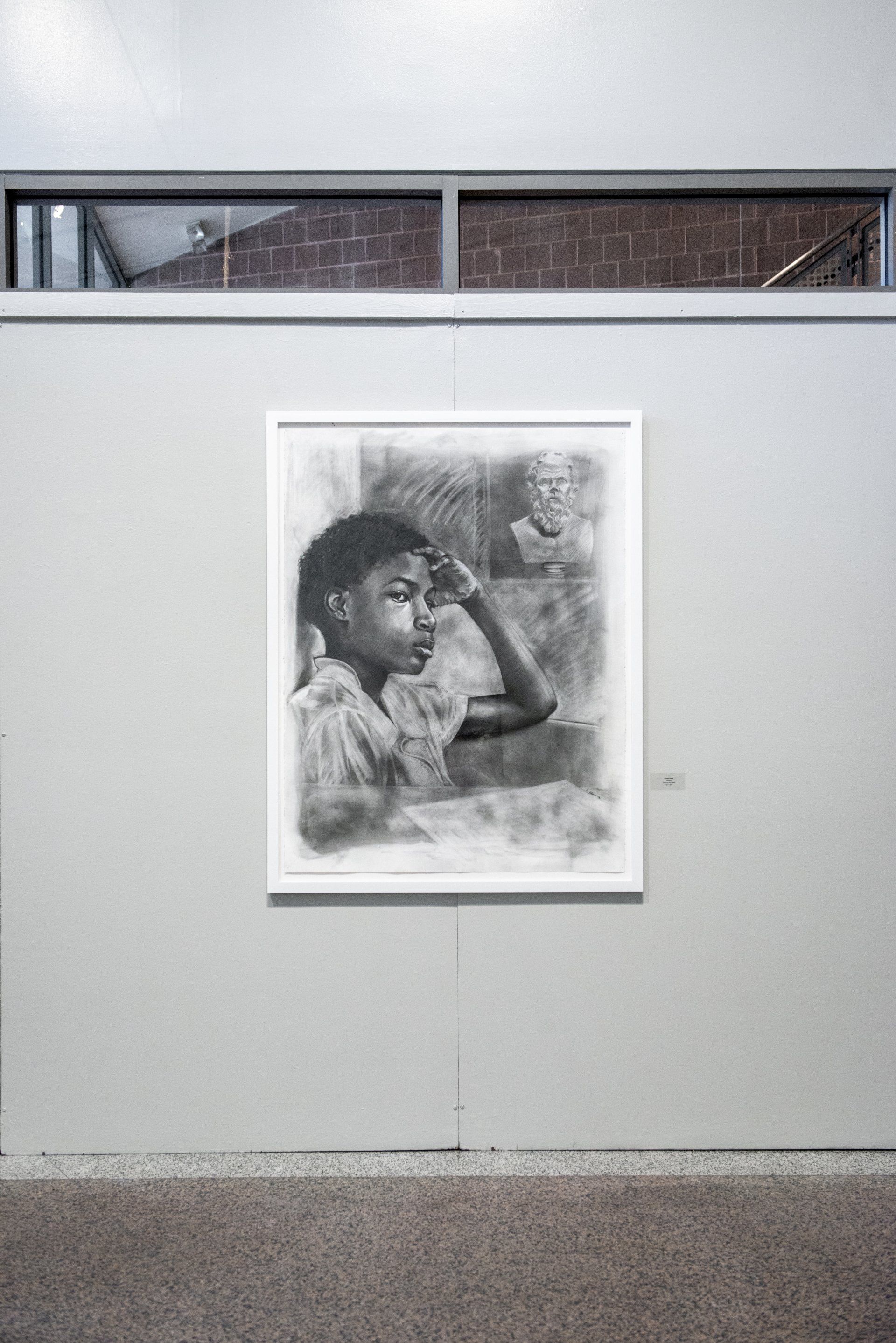 'Grey Matter' focuses on the perception of Blackness in an array of capacities. The works examine how blackness has been perceived and responded to by America’s dominant society throughout history, including the educational system, law enforcement, and public policies.