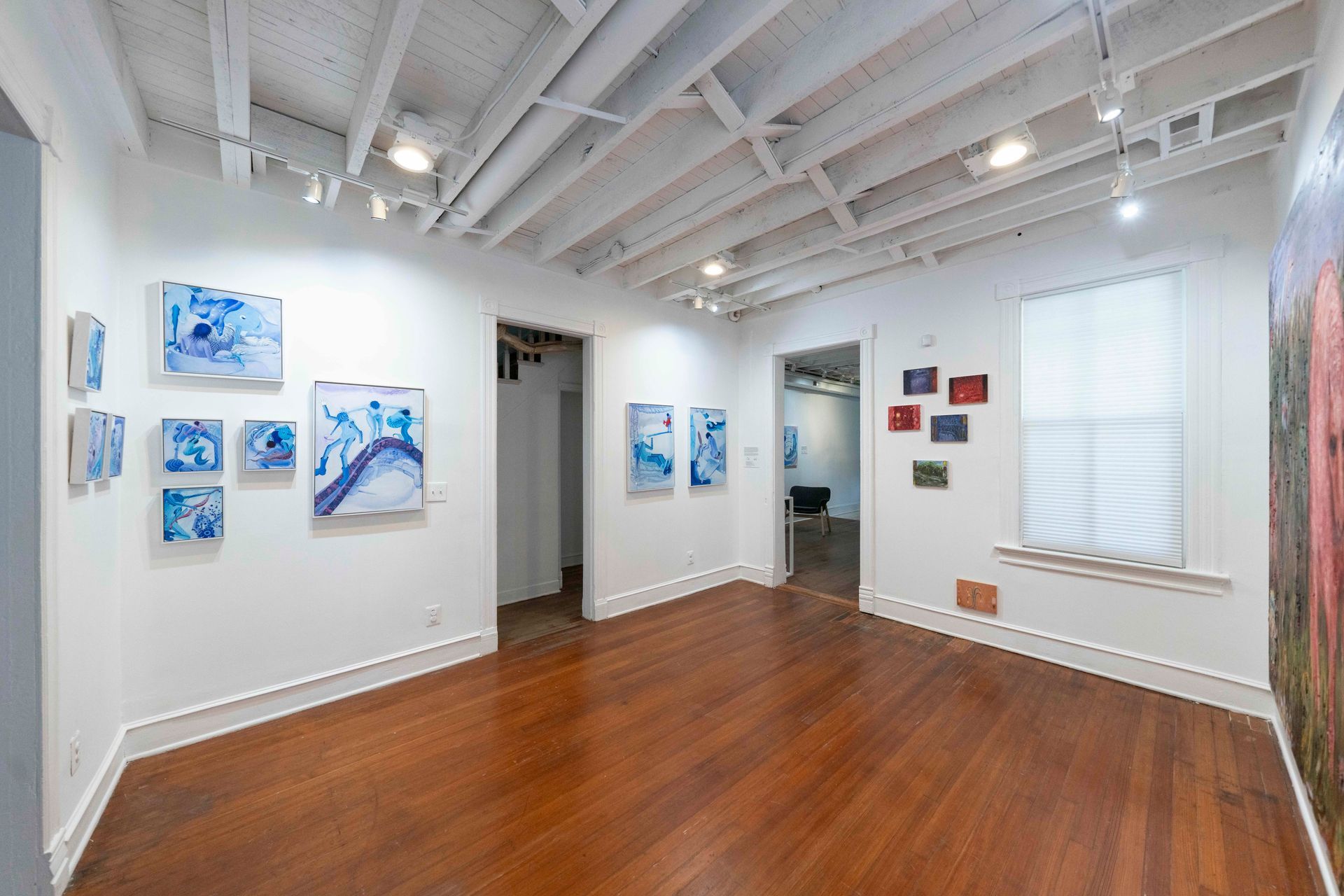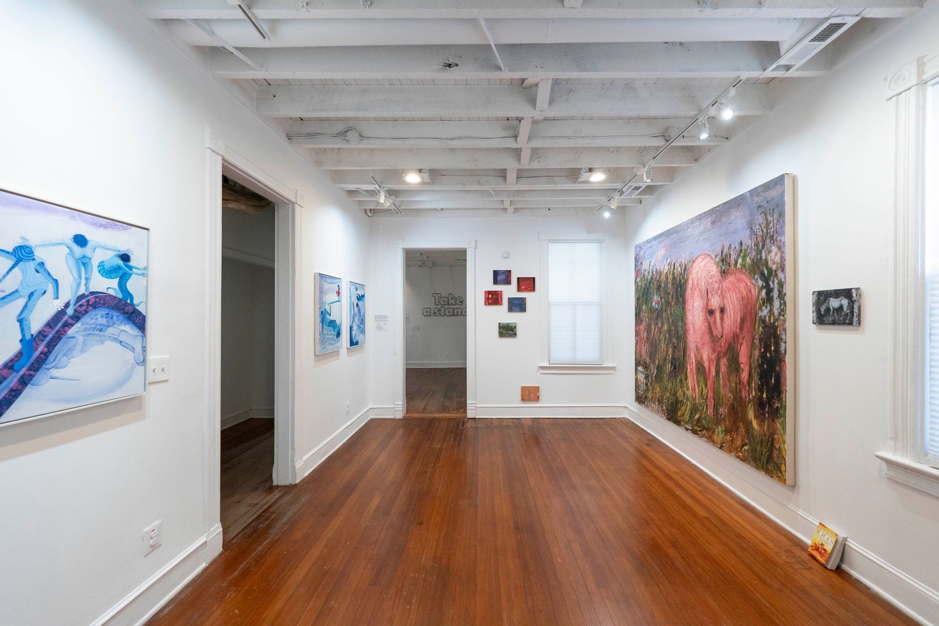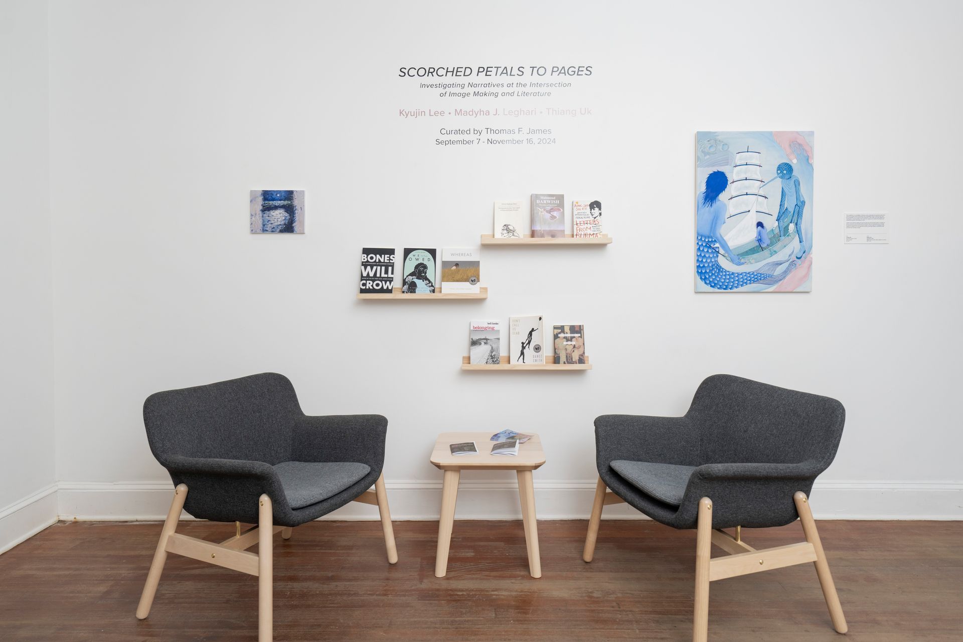 This exhibition examines the dynamic relationships that exist between literature and image making. Both of these artistic mediums have been utilized for storytelling, uncovering truths, and even spreading propaganda. The work in Scorched Petals to Pages explores historical messaging and protest art that can galvanize support for social movements, how one can examine their place in the world, and how linguistics can transcend the human experience.