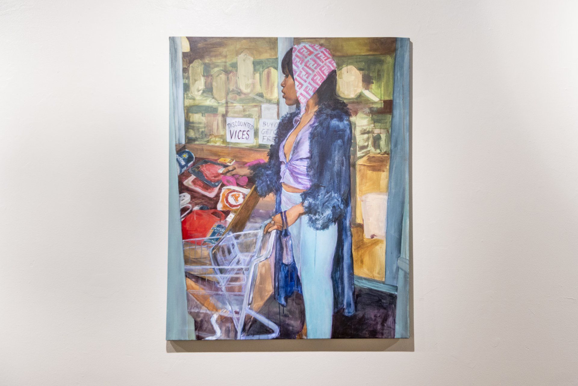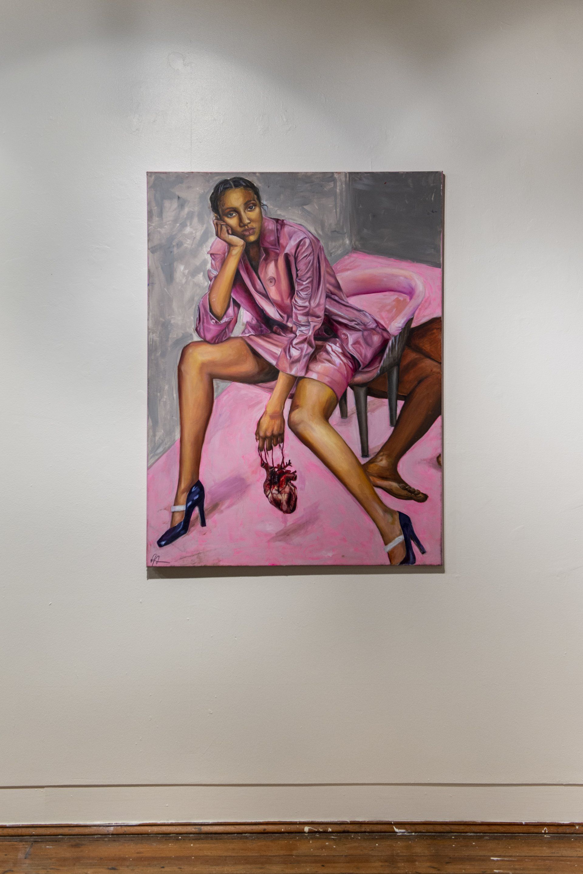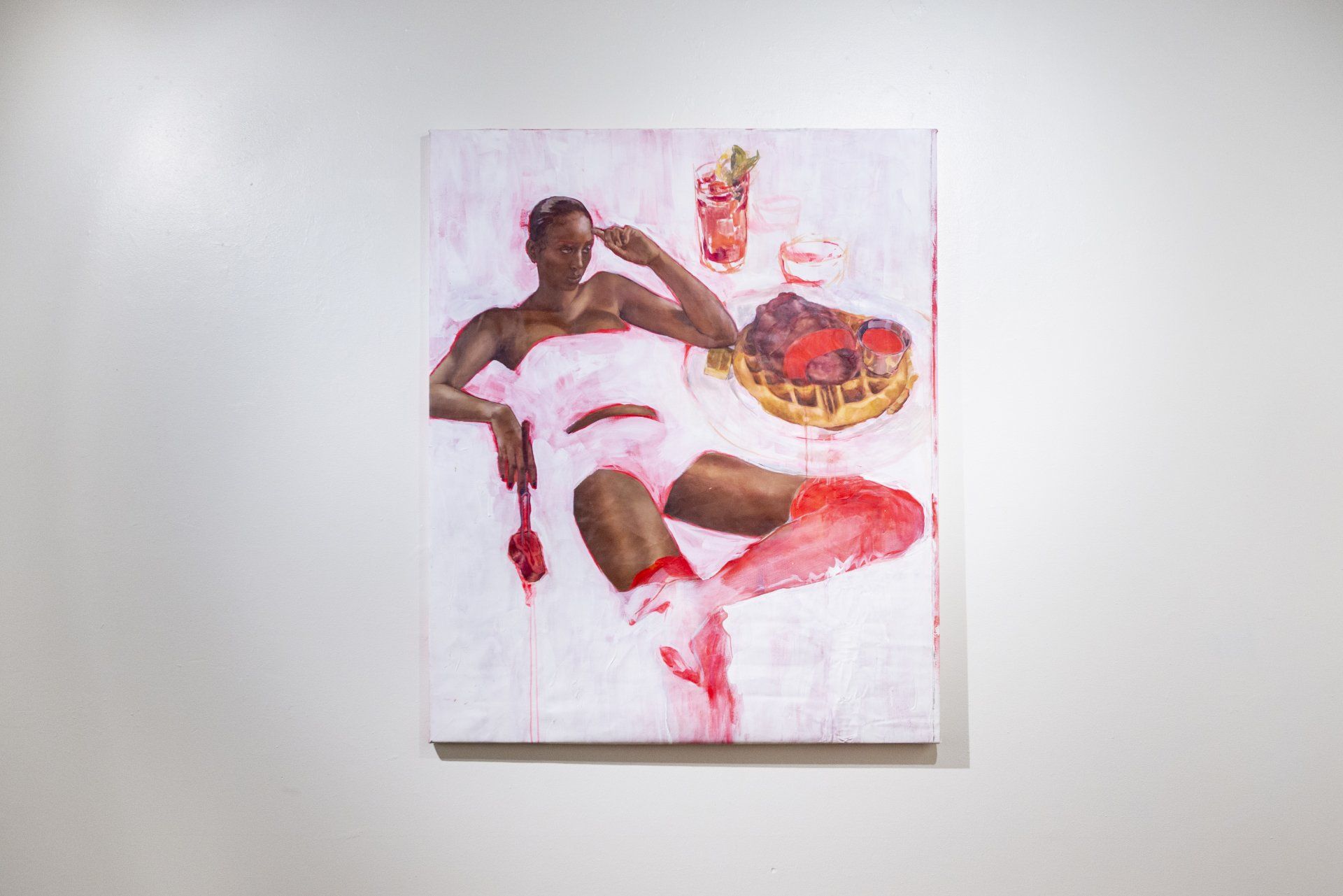 This exhibition entices viewers with paintings depicting Black women, and women of color, in ways that accentuate their confidence and sexuality while covertly exposing dark realities that exist beneath the surface.