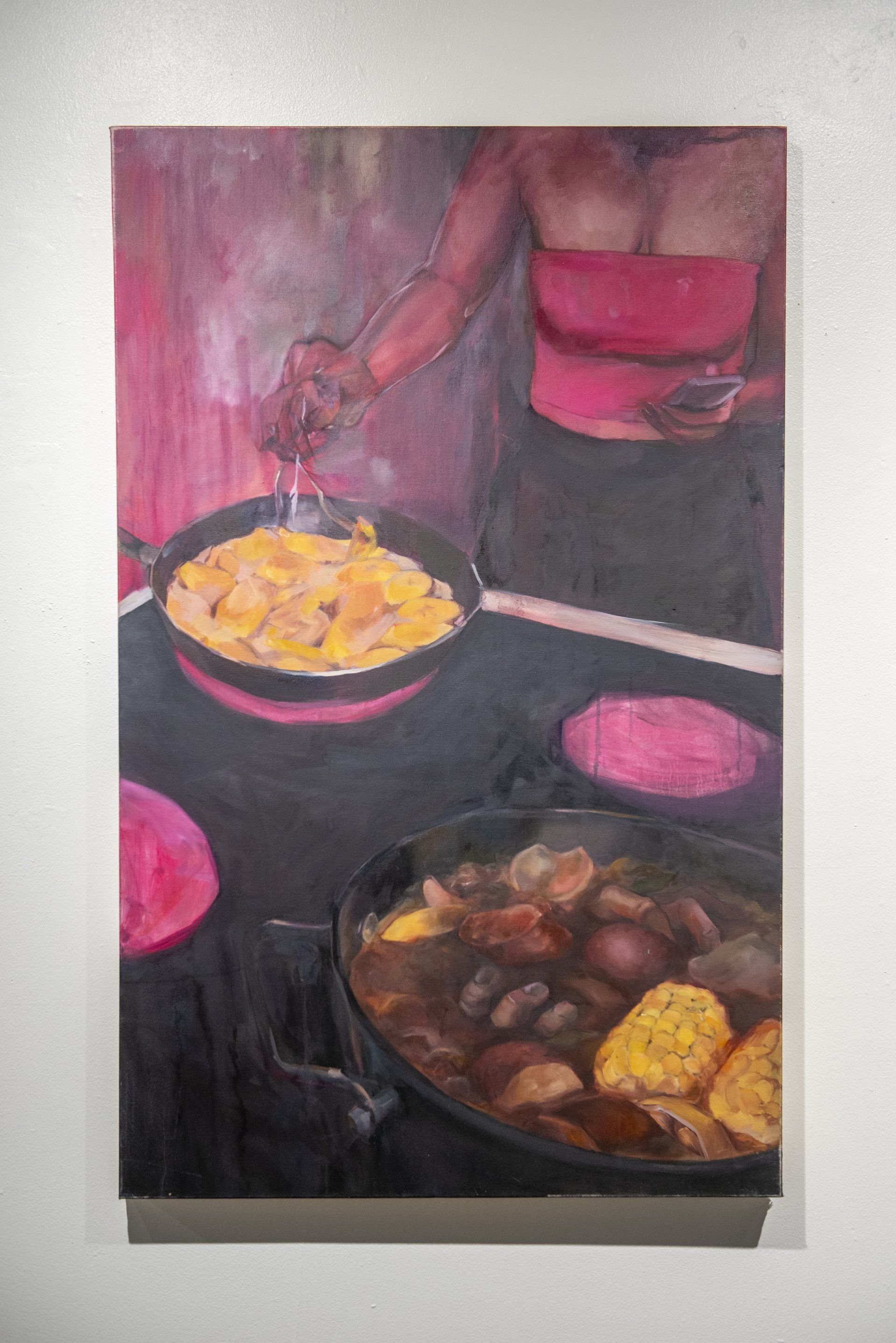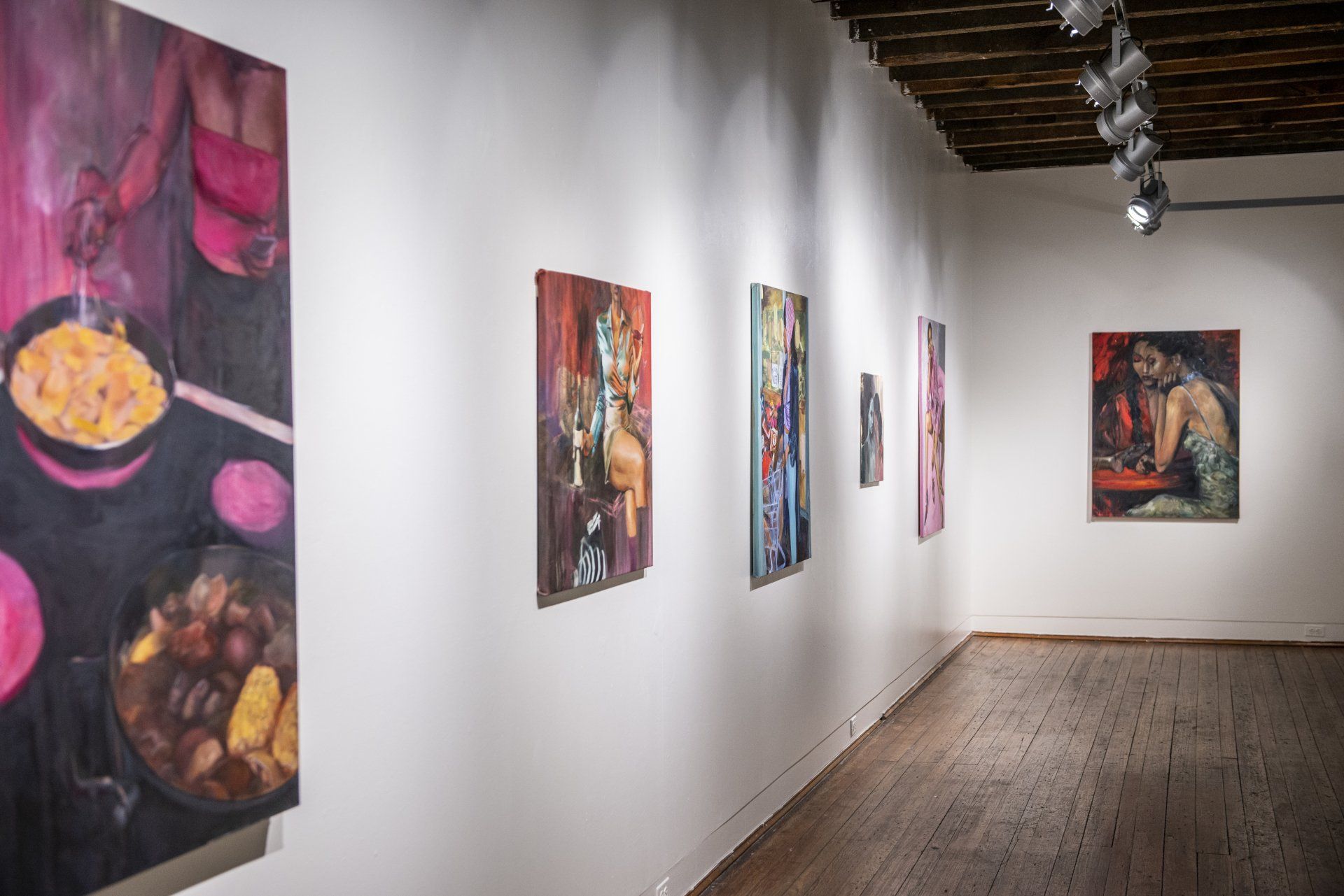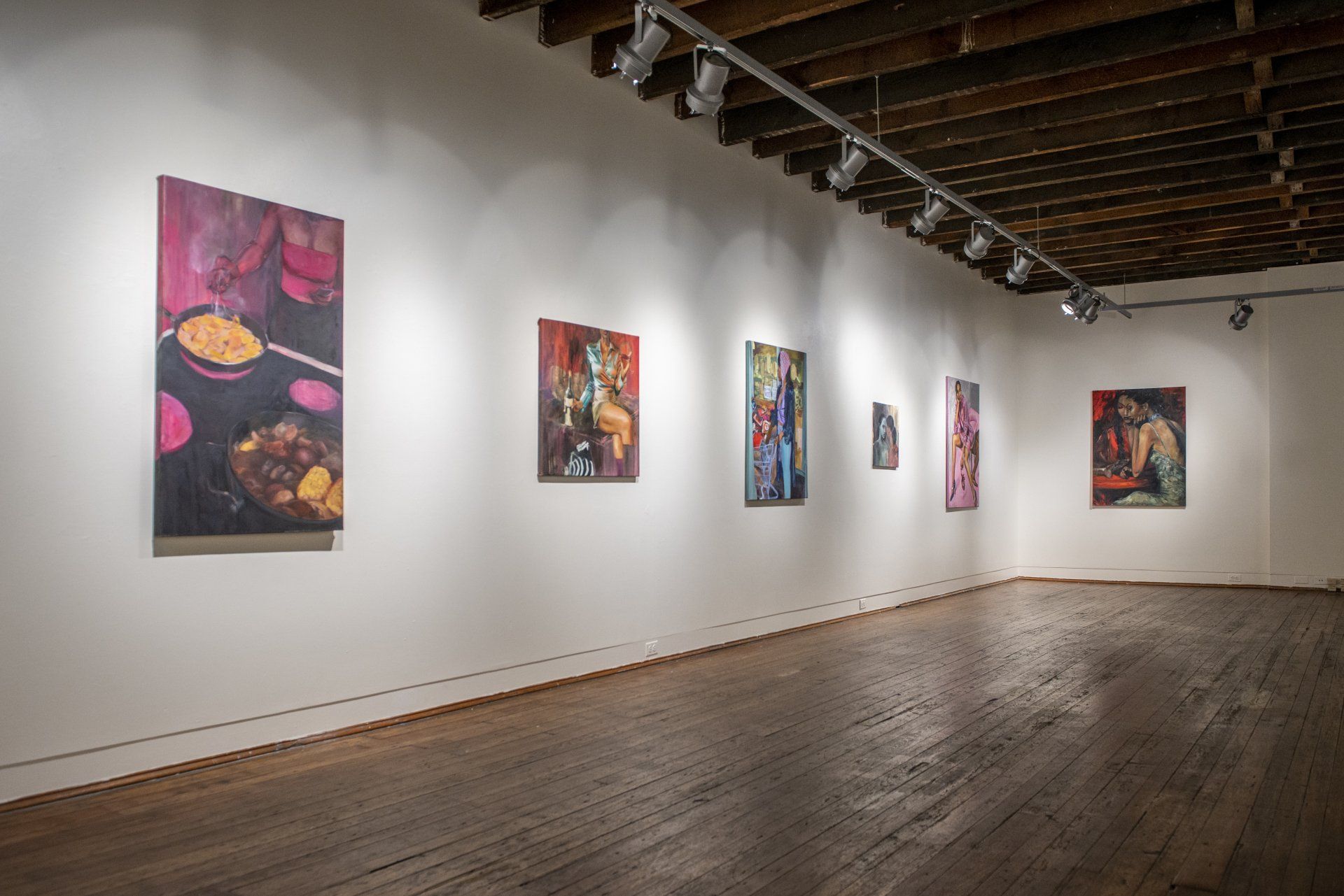 This exhibition entices viewers with paintings depicting Black women, and women of color, in ways that accentuate their confidence and sexuality while covertly exposing dark realities that exist beneath the surface.