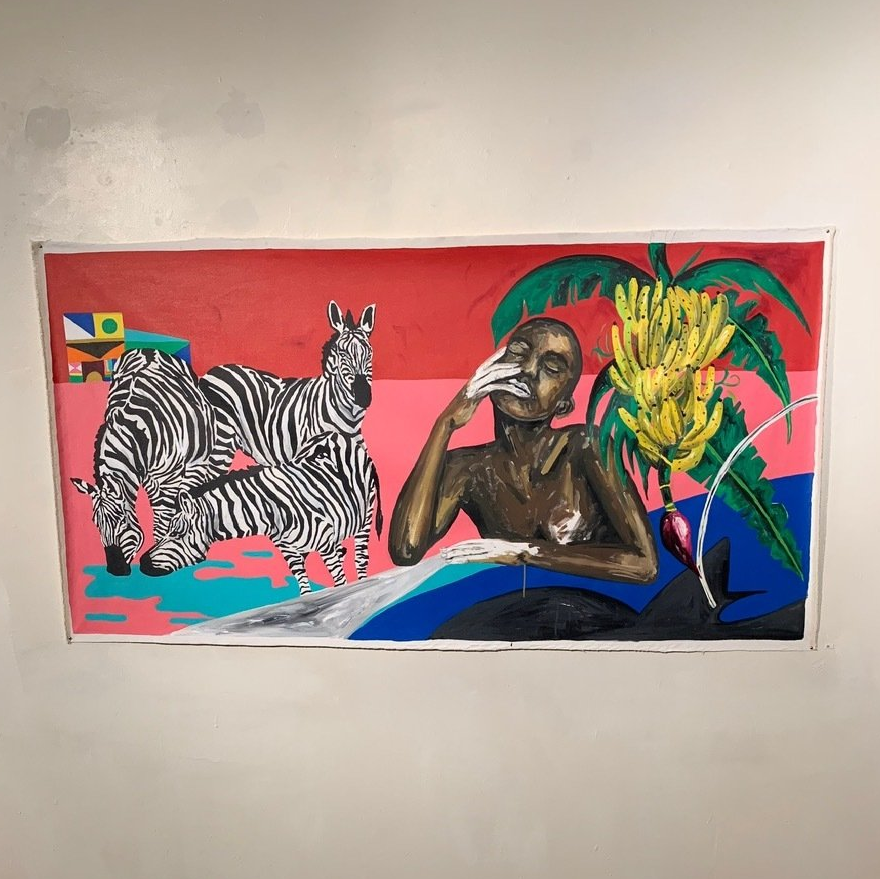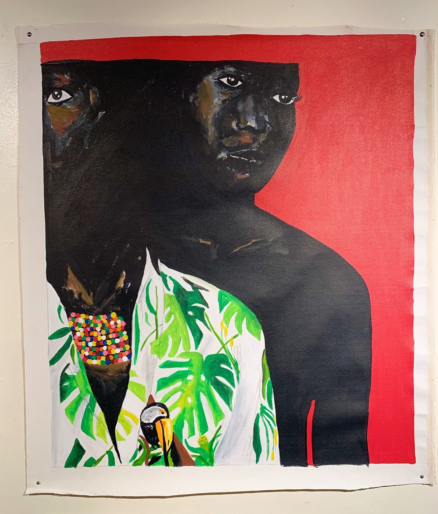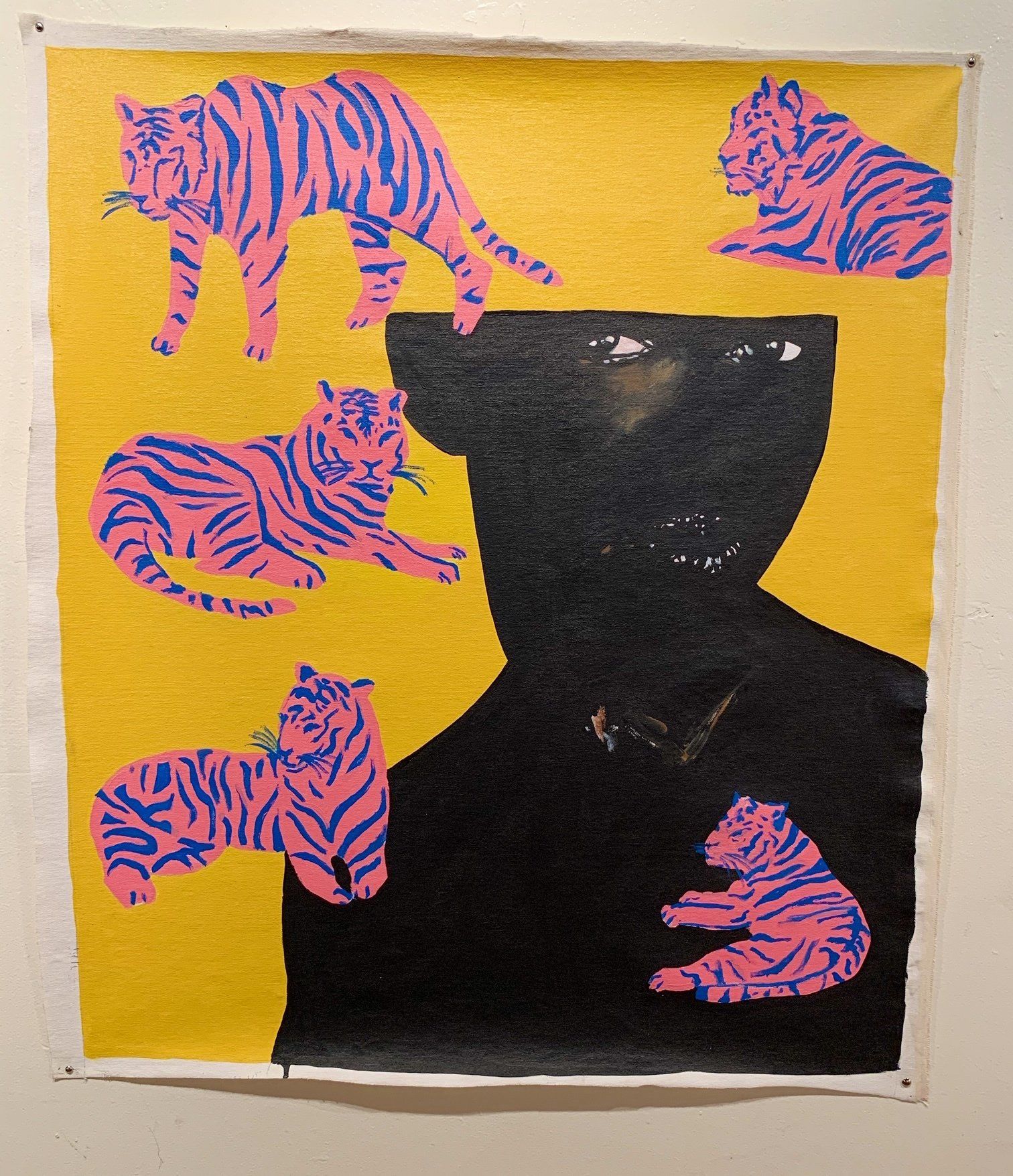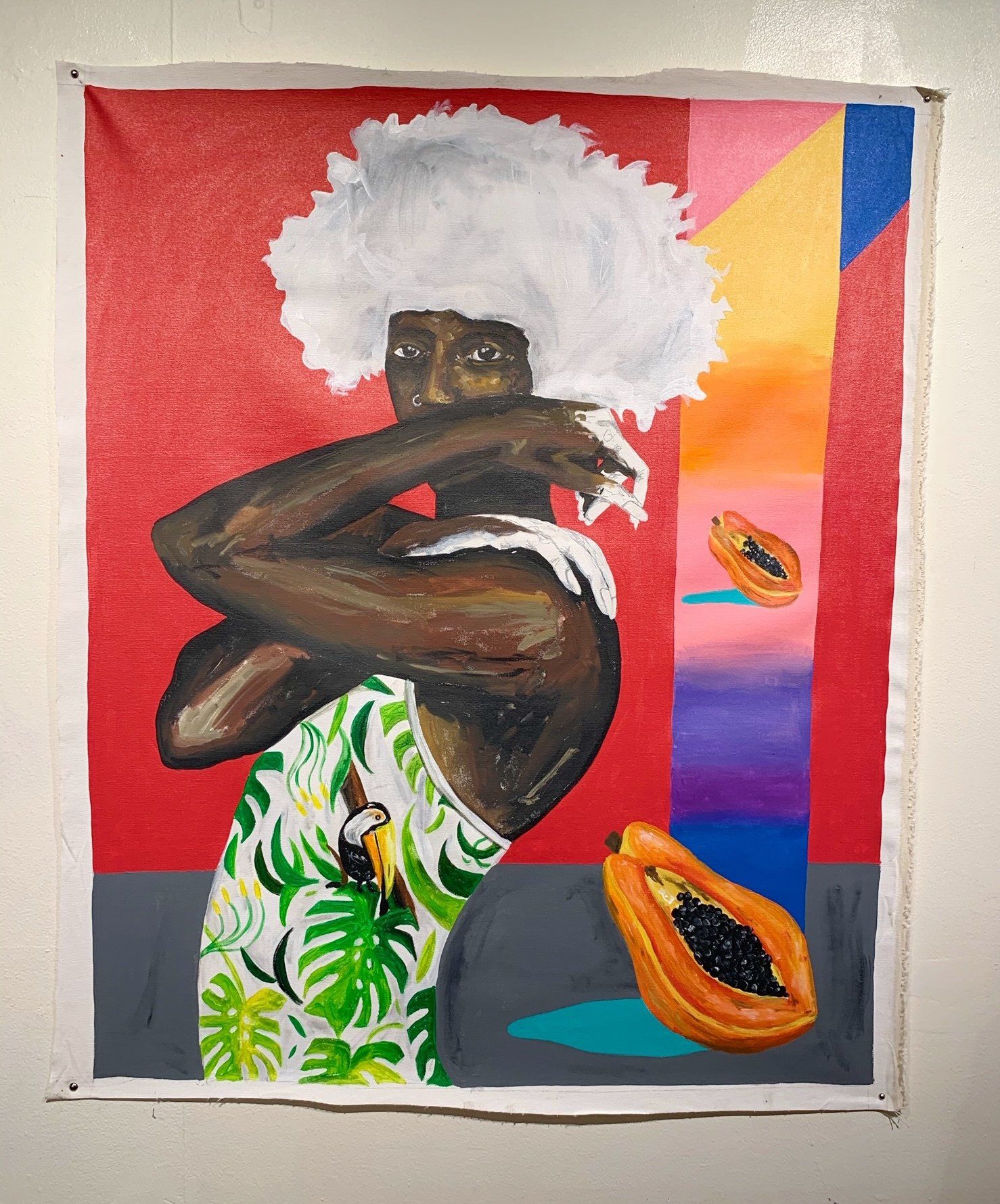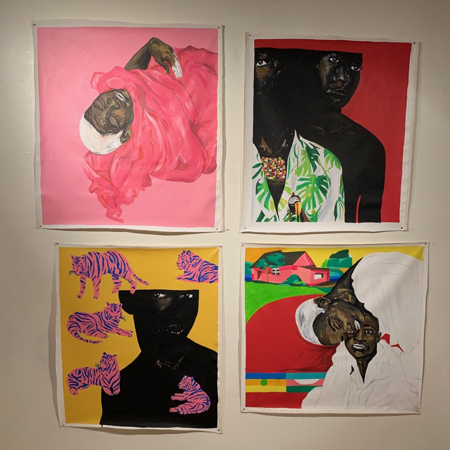 The artwork in this exhibition depict the Black figure surrounded by nature, fantasy, and objects associated with leisure, while keeping the environments and subjects in-tune with one another. The subjects, in their most honest manner, greet you both formally and contextually. These works are like a vintage hand painted commercial street sign for luxury goods, but the exchange is only cultural currency - something you can't buy.